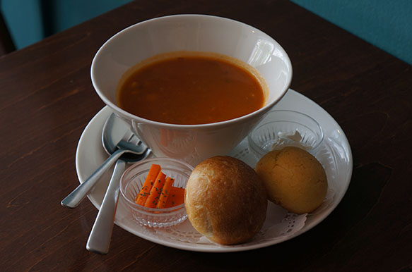 三宮駅のほど近く、磯上エリアにある古いビルの3階。可愛いブルーの壁に囲まれ、アンティークな小物、ダークブランの木の椅子やテーブルが配された、落ち着きある空間。「自分が美味しいと思ったもの」を大切にするオーナー・荒井厚子さんの感覚とこだわりがつまった、愛情あふれる珈琲やスイーツ、軽食と共に素敵なくつろぎの時間を過ごしてください。